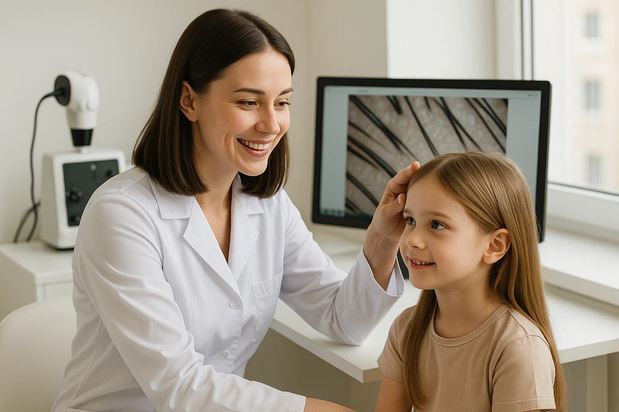 Для детей младшего школьного возраста характерна также трихотилломания – навязчивое действие, заключающееся в выдергивании собственных волос, что требует уже вмешательства не столько трихолога, сколько детского психолога или невролога, способного найти корень психологической травмы. Стригущий лишай, или микоз волосистой части головы, также остается частым виновником облысения, который легко диагностируется при помощи люминесцентной лампы Вуда и микроскопического исследования, а лечится современными противогрибковыми средствами, принимаемыми перорально.