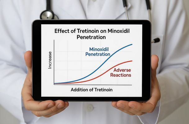 Соединение третиноина с миноксидилом представляет собой стратегию, направленную на преодоление главного ограничения популярного средства против выпадения волос – его низкой биодоступности из-за недостаточного проникновения сквозь кожный барьер. Третиноин, будучи производным витамина А, работает как мощный кератолитик, ускоряющий клеточное обновление и разрушающий плотный роговой слой, что теоретически открывает дополнительные пути для доставки миноксидила к волосяным фолликулам. Этот синергетический эффект способен трансформировать стандартную терапию, однако он сопровождается существенным повышением риска возникновения выраженных дерматологических реакций, что требует исключительно взвешенного подхода.
